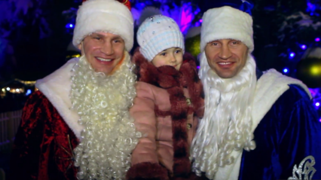 Братья Виталий и Владимир Кличко в костюмах Дедов Морозов записали поздравления для украинцев с Новым годом и Рождеством.