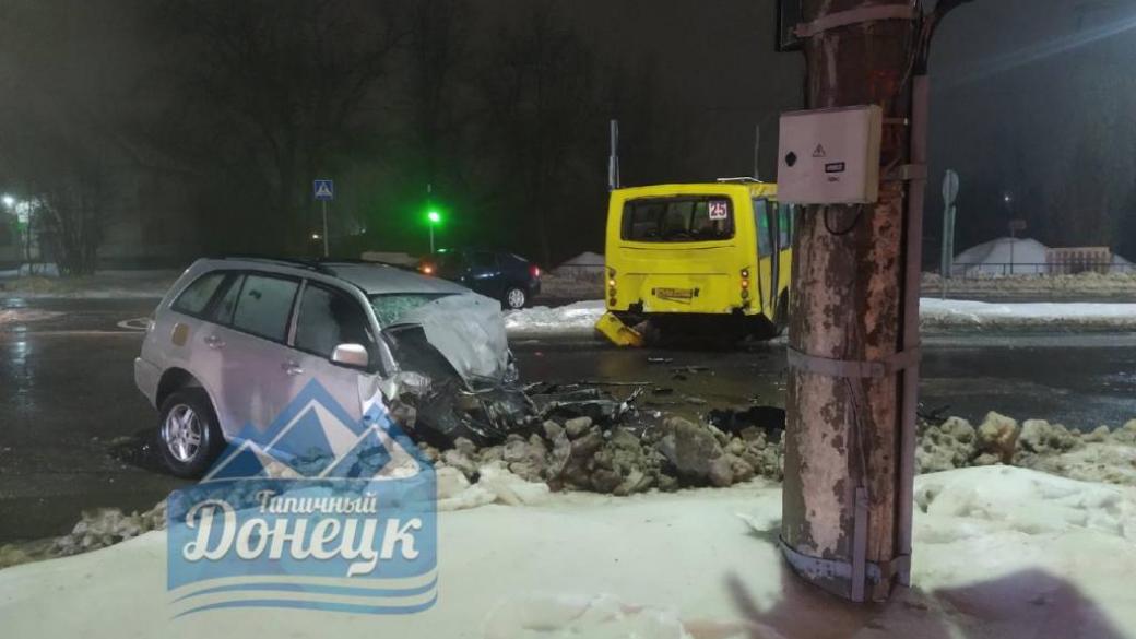 Фатальной для водителей неподконтрольного Донецка стал автобус маршрута N25, в который на Мариупольской развилке днем врезался автомобиль.