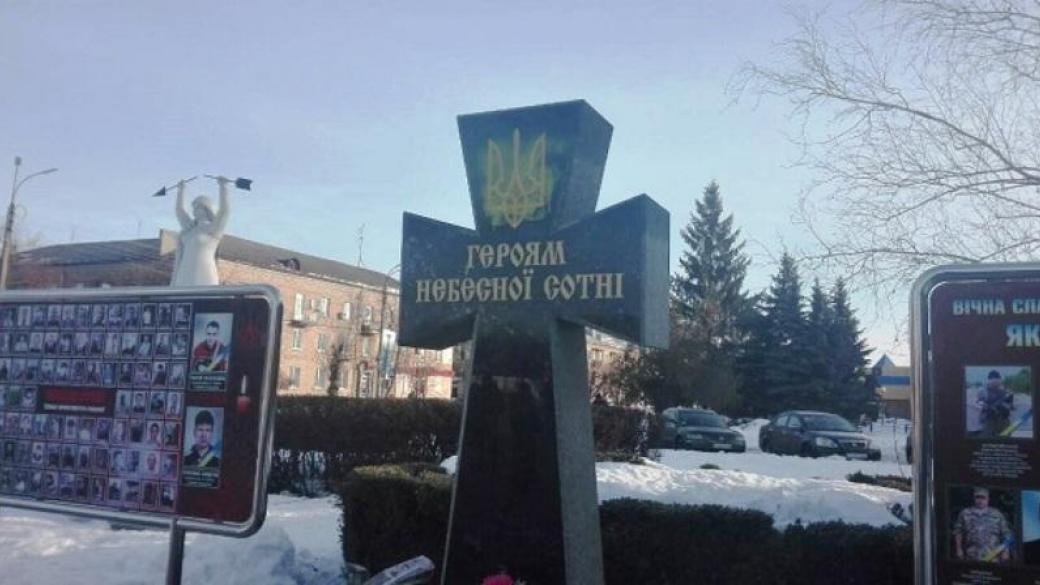В центре города Смела Черкасской области облили краской крест, установленный в память Героев Небесной Сотни.