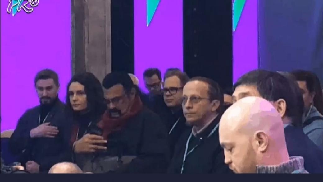 А Стивен Сигал выступив на съезде заявил, что он за мир во всем мире и против пропаганды.
