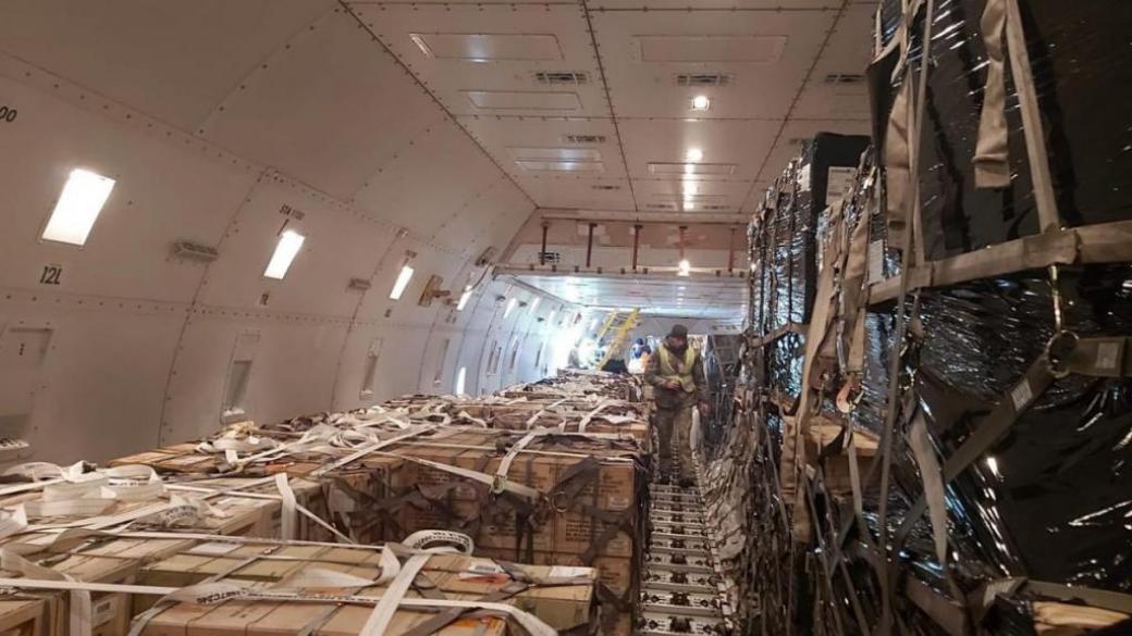 «Пятая птичка в Киеве! Еще 84 тонны боеприпасов разного калибра! В ближайшие дни ждем очередной груз оборонительного оружия от наших друзей из США», — написал министр.