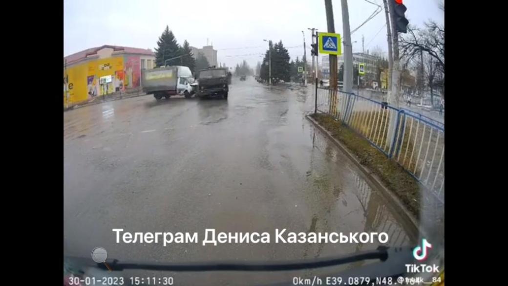 "Город Антрацит на Луганщине. «Освободители Донбасса» тупо едут на красный свет, не соблюдая никаких правил, и устраивают серьезное ДТП", прокомментировал он опубликованное видео.