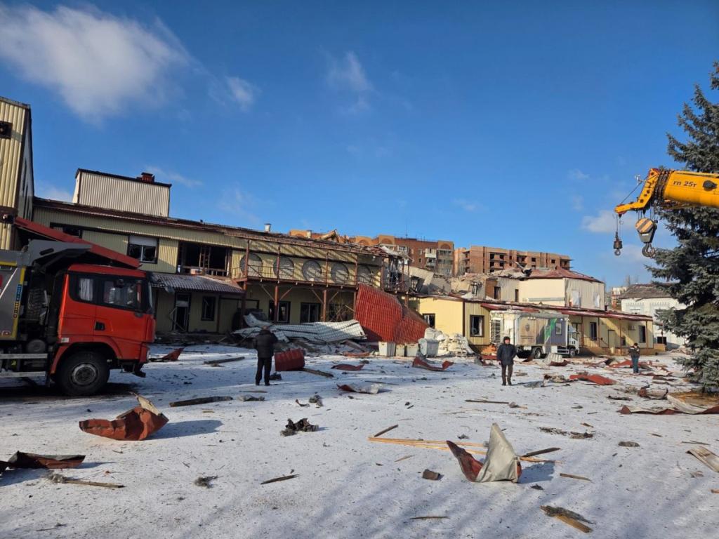 В результате утреннего авиаудара по Славянску, нанесенного тремя авиабомбами ФАБ-250, зафиксированы значительные разрушения гражданской инфраструктуры.
