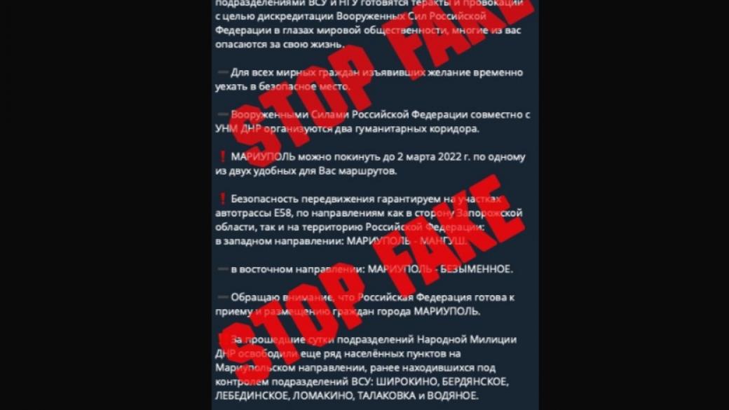 Так, паблики ОРДО начали активно распространять информацию о «зеленых коридорах», которые якобы предоставят российские войска и НВФ «ДНР», призывая жителей Мариуполя «безопасно» покинуть город.