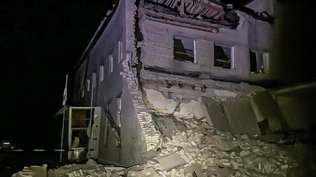 «Этой ночью враг нанес удары по населенному пункту, граничащему со страной-агрессором. Одно из попаданий пришлось непосредственно в здание пожарно-спасательного подразделения. В результате обстрела треть здания пожарного депо была разрушена. Кроме того, повреждены окна и ворота фасадной части, внутренние перегородки и двери здания.На дежурстве находились 6 спасателей, к счастью никто из них не пострадал», — сообщает ГСЧС Украины.