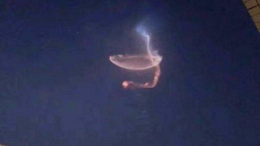 Жители Пекина увидели в ночном небе очень странное явление — разноцветные лучи света и объект круглой формы, который напомнил НЛО.