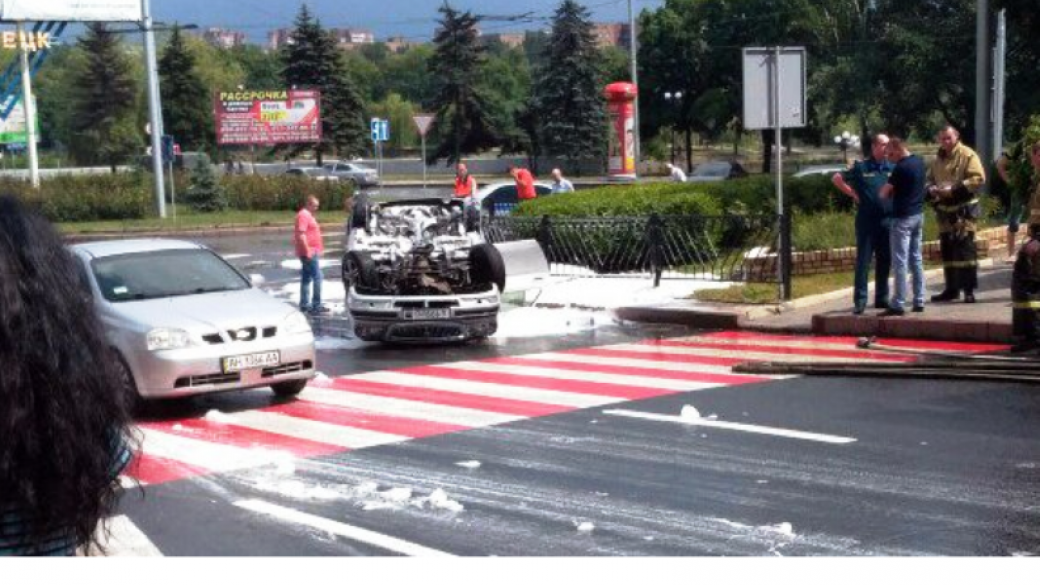 В центре оккупированного Донецка на пересечение бульвара Шевченко и Набережной перевернулся автомобиль.