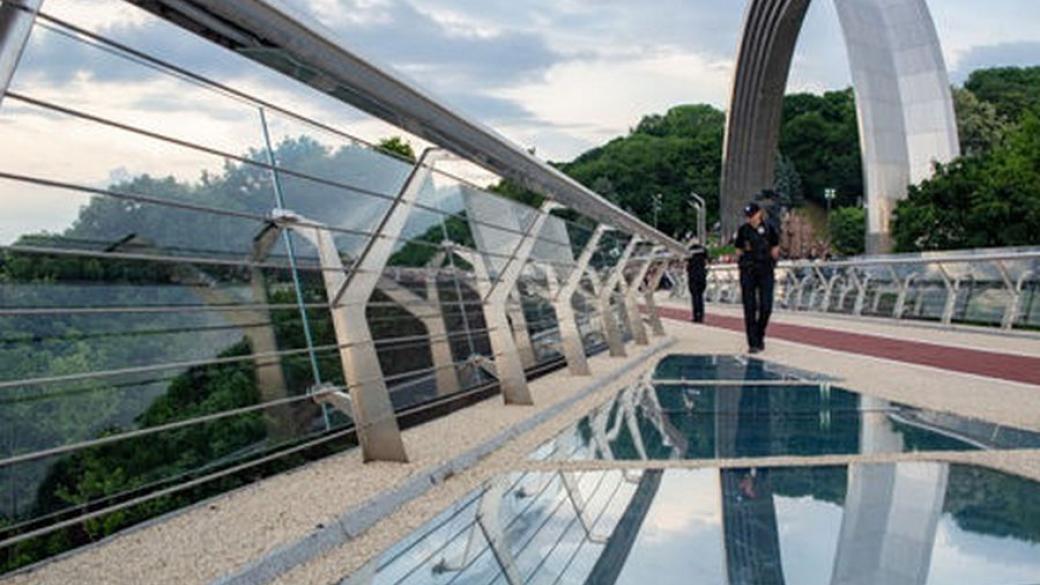 В Киеве на новом стеклянном мосту треснула еще одна секция.