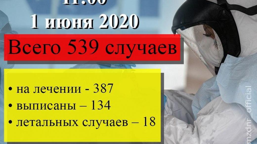 «По состоянию на 11:00 1 июня зарегистрированных и подтвержденных случаев COVID-19 на территории ОРДО — 539: