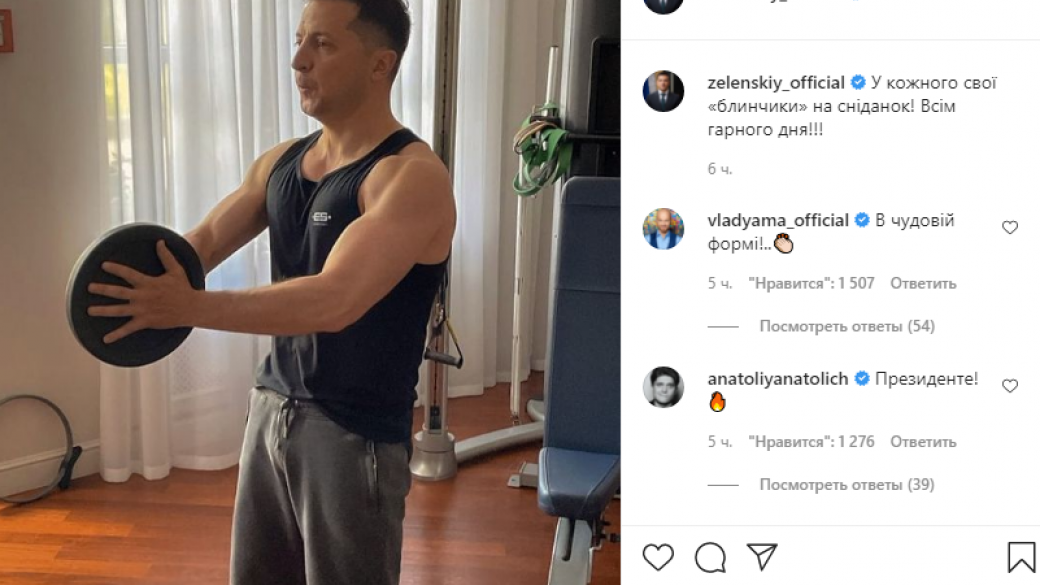 Президент Украины Владимир Зеленский в Instagram опубликовал фото, которое свидетельствует о том, что при плотном рабочем графике он находит время для регулярных занятий спортом.
