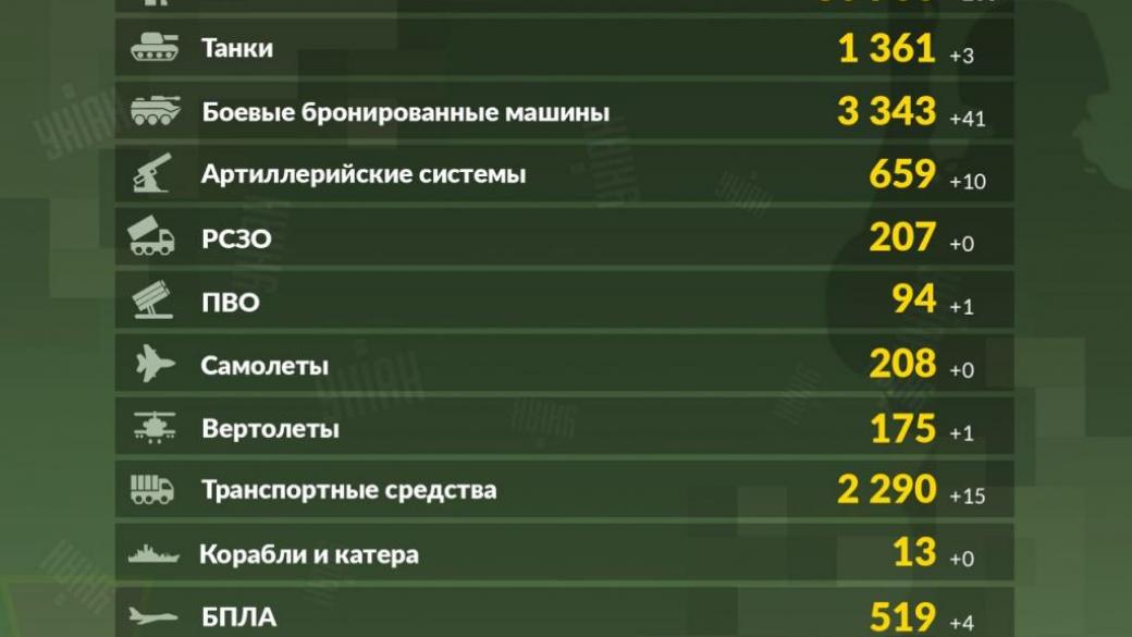 - личного состава — около 30 700 (+200) человек ликвидировано,