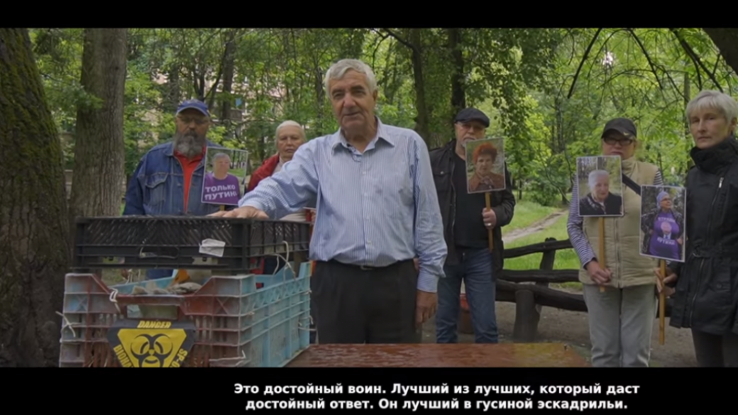 Киевские пенсионеры в ответ на информацию российских СМИ о тайных «биологических лабораториях США» в Украине и о домашних птицах-убийцах, «натренированных на полеты в РФ и убийства россиян», показали на видео гуся перед отправкой на «боевое задание в РФ», и пригрозили, что российские участники «отряда Путина» станут первыми, кто пострадают от него.