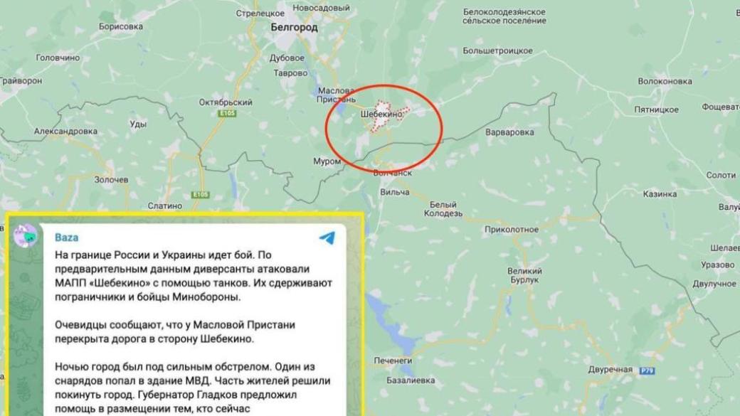 По сообщениям российских пабликов, на границе России и Украины идет бой. По предварительным данным россиян некие диверсанты атаковали МАПП «Шебекино» с помощью танков. Их сдерживают пограничники и бойцы минобороны РФ.