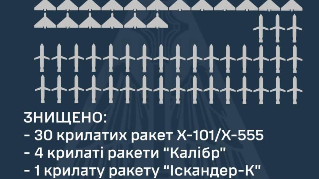 Всего враг выпустил 53 ракеты разных типов и 47 ударных БпЛА: