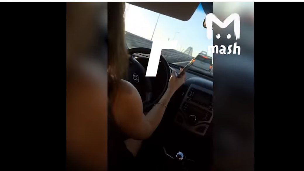 Отмечается, что она так увлеклась съемкой, что не заметила Mini Cooper и въехала в него на полной скорости. После ДТП под аркой моста образовалась длинная пробка.