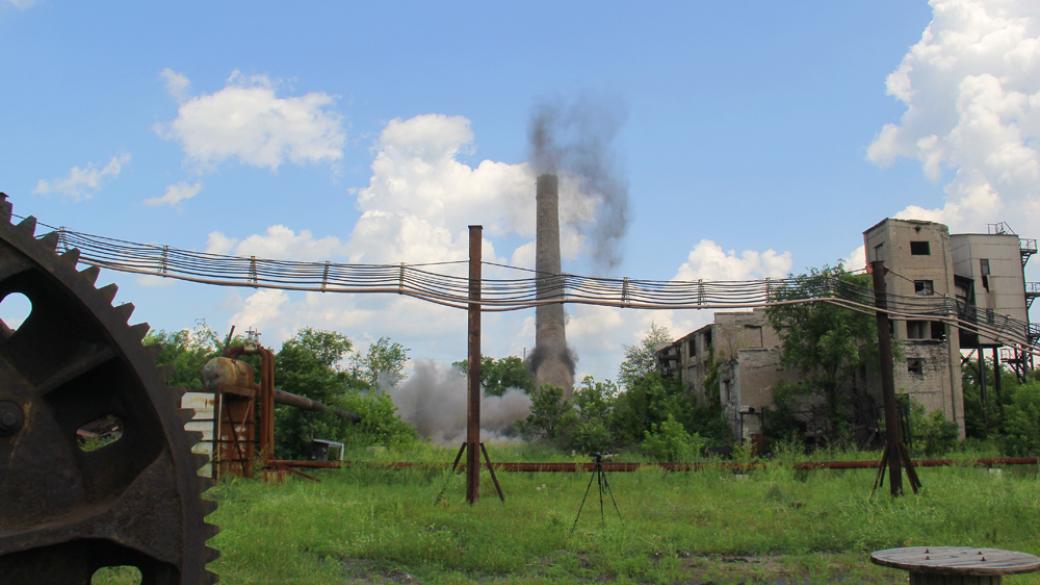 Как утонили в «МЧС», взрывные работы по демонтажу аварийной кирпичной трубы высотой 45 метров выполнялись электрическим способом.