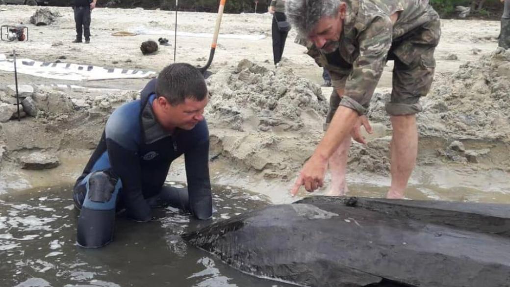 После подрыва оккупантами дамбы Каховской ГЭС археологи нашли на обмелевшем дне Днепра, семиметровую лодку из ствола дуба.