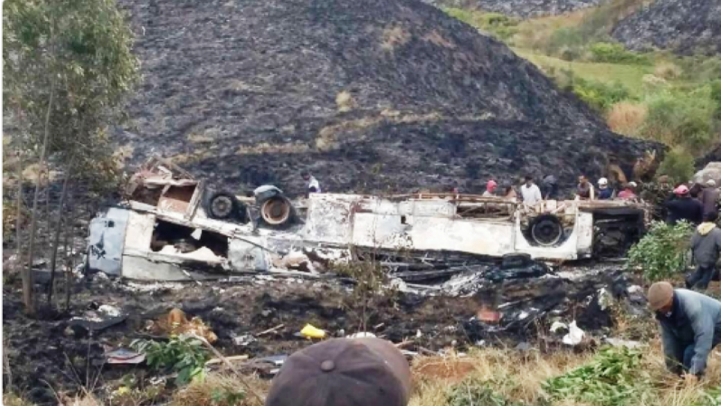 На Мадагаскаре автобус с участниками одной из христианских организаций рухнул в овраг и загорелся, в результате страшного ДТП погибли не менее 34 человек.