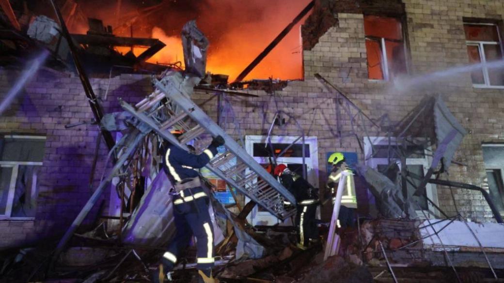 «В ночь на 1 августа враг атаковал город Харьков беспилотниками. Один БПЛА попал в трехэтажное здание учебного заведения Салтовского района. Произошло частичное разрушение конструкций 2-го, 3-го этажей, перекрытия и крыши. Также возник пожар на площади около 200 кв. На месте происшествия работали 9 единиц техники и 50 человек личного состава. В здании предварительно не было людей.