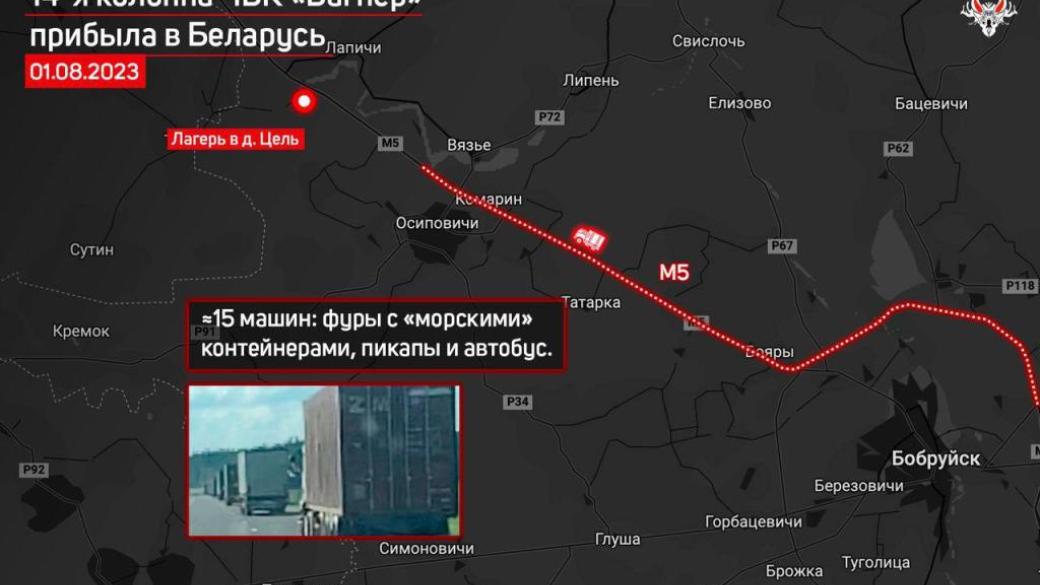 14-я колонна ППК «Вагнер» прибыла в Беларусь, сообщает местное издание "Гаюн"