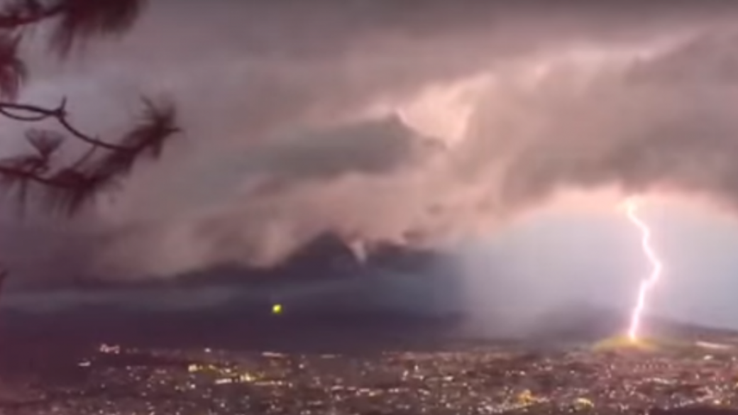Житель мексиканского города Сан-Хуан-Тепик-Наярит случайно снял на видео странный объект в небе, который засветился во время вспышки молнии.