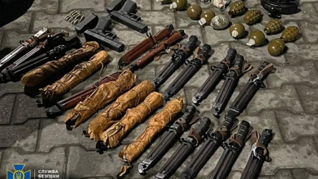 При нем были обнаружены два пистолета Glock, четырнадцать гранат с запалами к ним, двадцать два штык-ножа, а также прицел ночного видения.