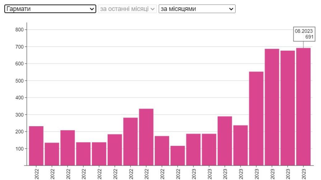 Так же в августе был второй показатель за весь период полномасштабной войны по уничтожению российского автотранспорта - 685.