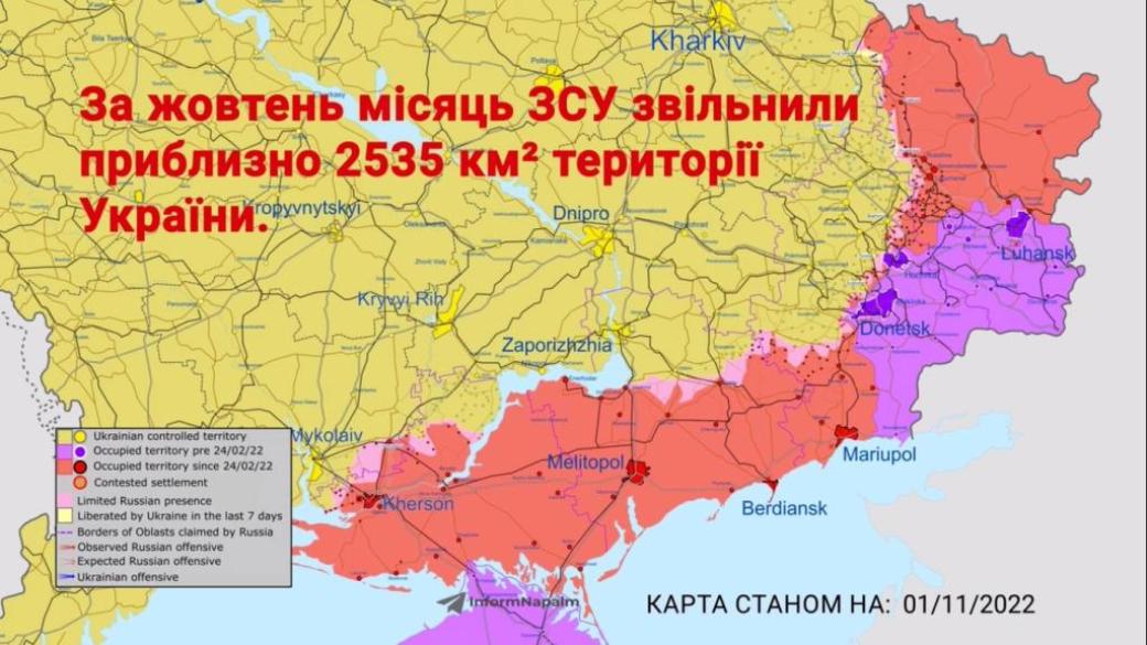 За октябрь ВСУ освободили около 2535 квадратных километров территории Украины.