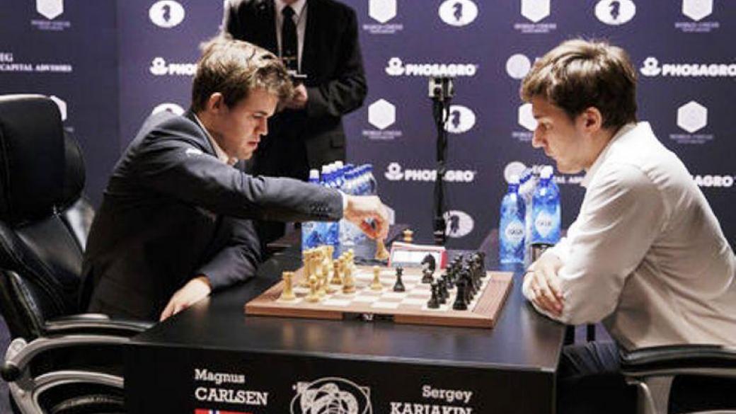 Первые две партии были сыграны в ничью, однако в последней Карякину необходимо было побеждать черным цветом, при этом Карлсен получил преимущество в дебюте, и в финале игры красивым тактическим ударом вынудил Карякина сдаться.