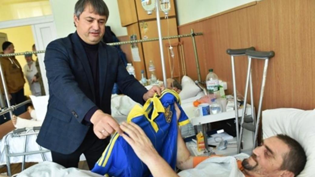 Отмечается, что украинские военнослужащие, находящиеся после ранения в зоне АТО в травматологическом отделении Клиники повреждений Главного военного клинического госпиталя, получили от Костюченко атрибутику национальной сборной Украины, календарь на 2017 год, а также сладости и фрукты.