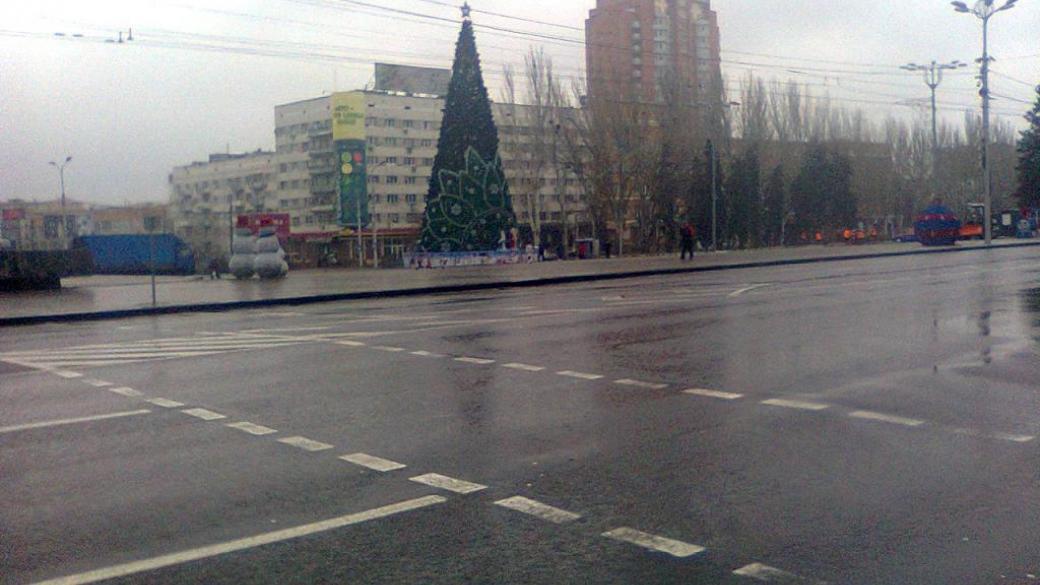 На фото показаны центральные улицы Донецка, в том числе и площадь Ленина, на которых практически нет людей и машин. Пользователи пишут: