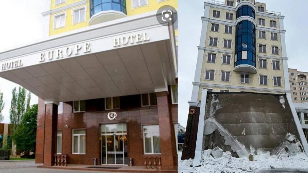 В неподконтрольном Украине Донецке возле ДК Куйбышева на входе в гостиницу «Европа» упал козырек. Об этом сообщают местные жители в социальных сетях.