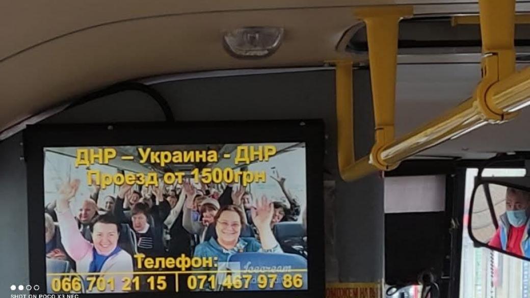 В маршрутках неподконтрольного Украине Донецка крутят рекламные ролики в которых жителям ОРДО предлагают поездки на украинскую территорию от 1500 гривен. Об этом сообщают местные жители в социальных сетях.