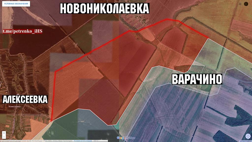 В районе восточнее Алексеевки и южнее Новониколаевки российские силы заняли несколько лесополос, а также продвинулись в пределах населенного пункта Варачино, закрепившись на его части.