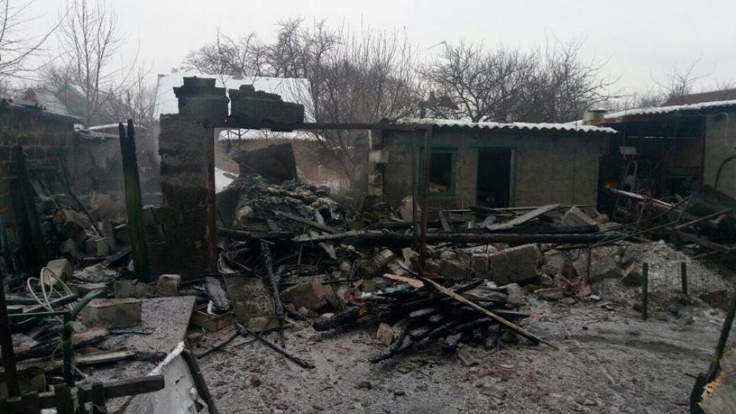 В прифронтовой Марьинке во время обстрела загорелся дом
