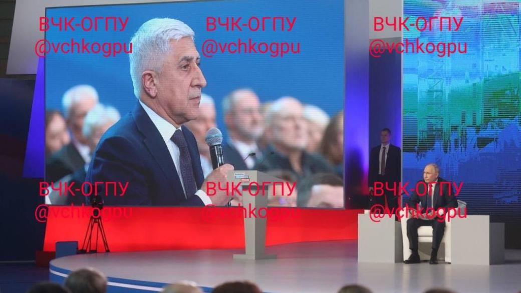 Президента рф Владимира Путина на особо охраняемой и проверяемой встрече с «доверенными лицами» сотрудник ФСО готовился прикрыть главу Кремля бронещитом. Об этом сообщает российский паблик "ВЧК-ОГПУ".