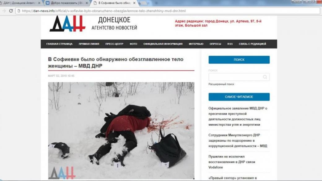 Сегодня на сайте боевиков женщина обнаружила новость о трупе женщины, найденном возле оккупированного Енакиево. Так, подруга отметила: «Я нашла на Донецком сайте информацию о найденном трупе женщины в Енакиево. Фото очень на Вику похоже, и фигура ее и вещи у нее такие были. Но почему-то ссылки уже не активна. Сайт официальный боевиков „ДАН“! Может снова замять хотят?».