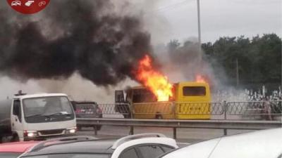 В Киев взорвалась и сгорела маршрутка: появилось видео