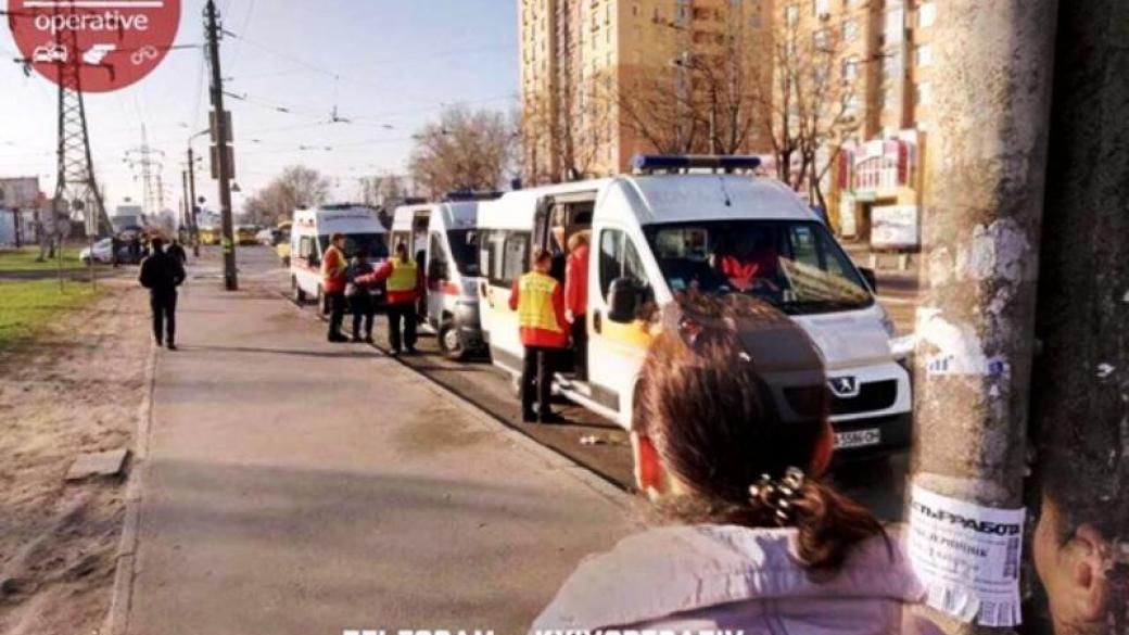 В Киеве сегодня утром в районе станции метро Черниговская микроавтобус Богдан маршрута № 555 столкнулся с трамваем № 28, в результате чего есть пострадавшие.