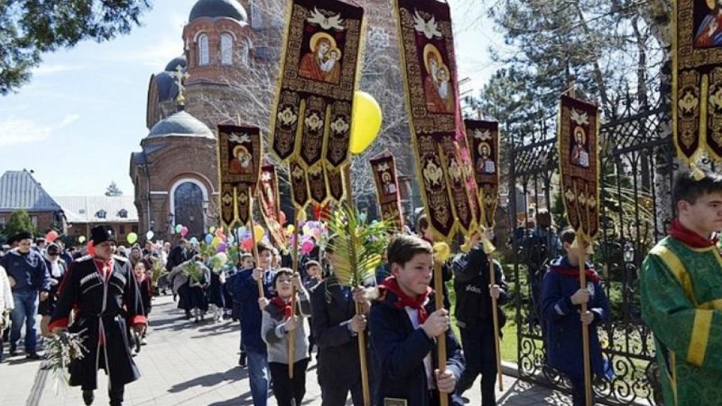 Соцсети шокированы фото странной акции, которая прошла в российском городе Краснодар, где дети в красных галстуках прошлись по улицам с иконами в руках.