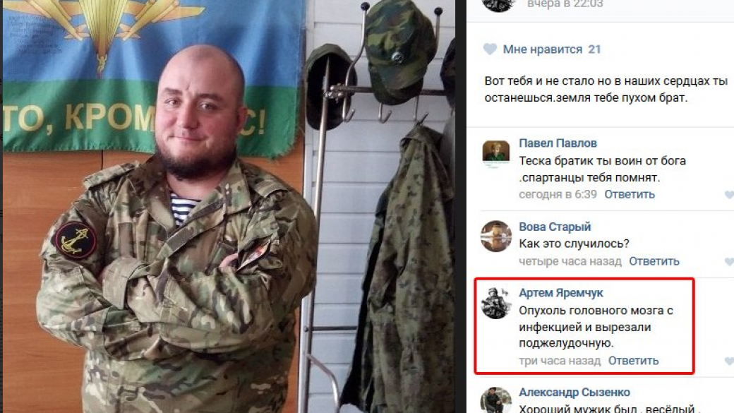 В зоне АТО в Донбассе от опухли головного мозга умер боевик «ДНР» из Донецка Логвинов Павел Викторович.