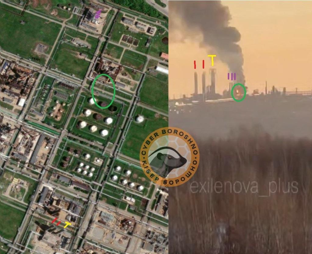 OSINT-аналитики из группы «КиберБорошно» проанализировали видео пожара на НПЗ и подтвердили, что удар был нанесен в районе установки АВТ-5. АВТ - первичная установка по переработке нефти, которая является ключевой в производственном процессе. Без этой установки дальнейшая переработка невозможна.