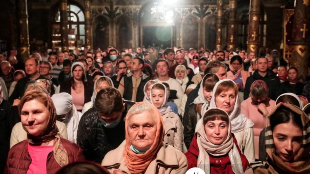 Сегодня на пасхальном богослужении в Киево-Печерской Лавре, УПЦ Московского партиархата, прихожане полностью проигнорировали меры социального дистанцирования и масочный режим.