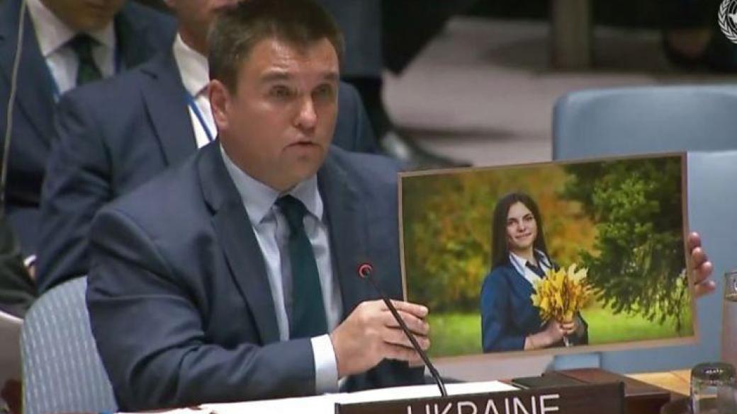 «Это Дарья Каземирова. Три дня назад ей исполнилось 15. Вчера она погибла во дворе своего дома от снаряда калибра 120 мм, который запрещен Минскими договоренностями, который выпустили пророссийские силы. Это снаряд из последнего „гумконвоя“, спрашиваю я российскую делегацию? Или пророссийские силы покупают тяжелые снаряды в местных супермаркетах? К сожалению, это риторический вопрос, он не нуждается в ответе, особенно со стороны РФ», — заявил Климкин.
