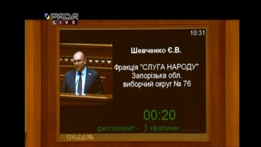 На сегодняшнем заседании Верховной Рады депутат от фракции «Слуги народа» Евгений Шевченко призвал парламентариев отправить в отставку министра внутренних дел Арсена Авакова. Соответствующее видео опубликовано в YouTube.