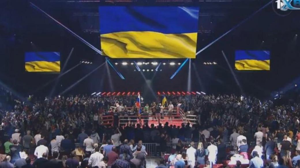 Перед началом титульного боя российского боксера-супертяжеловеса Александра Поветкина и украинского спортсмена Андрея Руденко по традиции были исполнены национальные гимны. Во время исполнения украинского гимна практически весь зал встал.