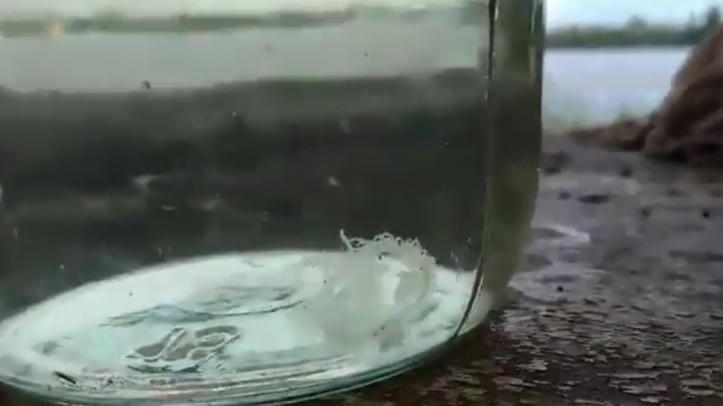 Он показал, как посадил выловленных медуз в банку, а затем отпустил обратно в водоем.