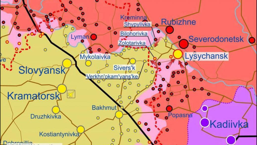 Аналитики отмечают, что войска РФ продолжают наступление севернее и западнее Лисичанска.