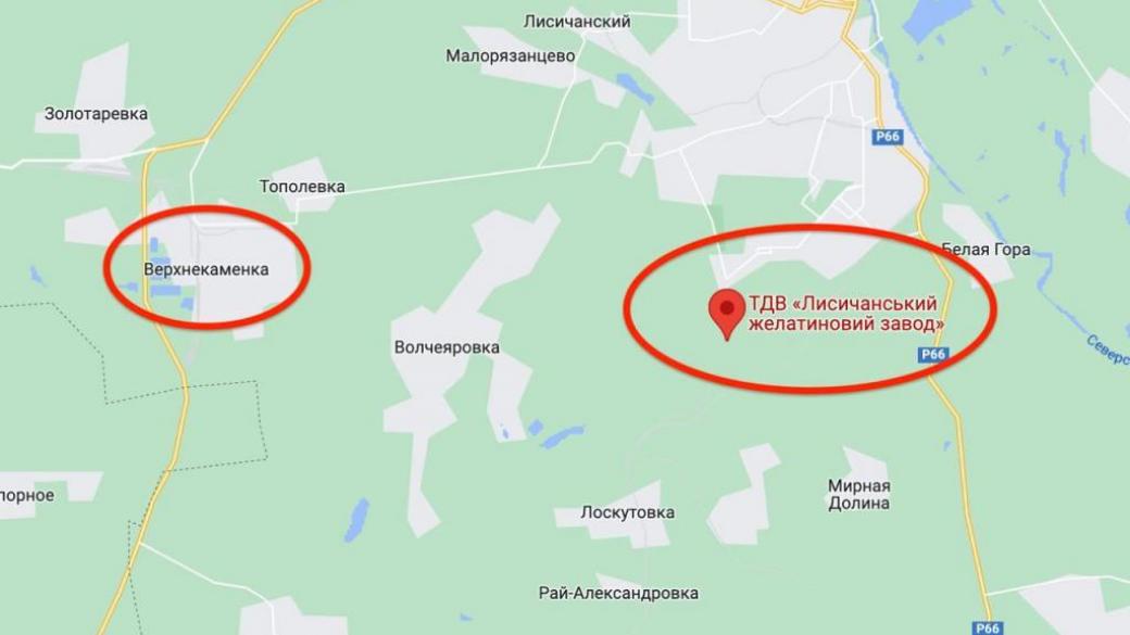 "Первое – на Верхнекаменку, где расположен Лисичанский НПЗ, а второе – на желатиновый завод к югу от города".