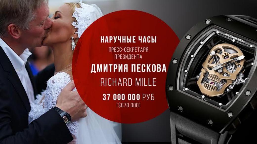 Наручные часы Александра Пескова, пресс-секретаря президента России, замеченные на его руке во время бракосочетания, стоят от от 600 000 евро до 1 400 000 долларов.